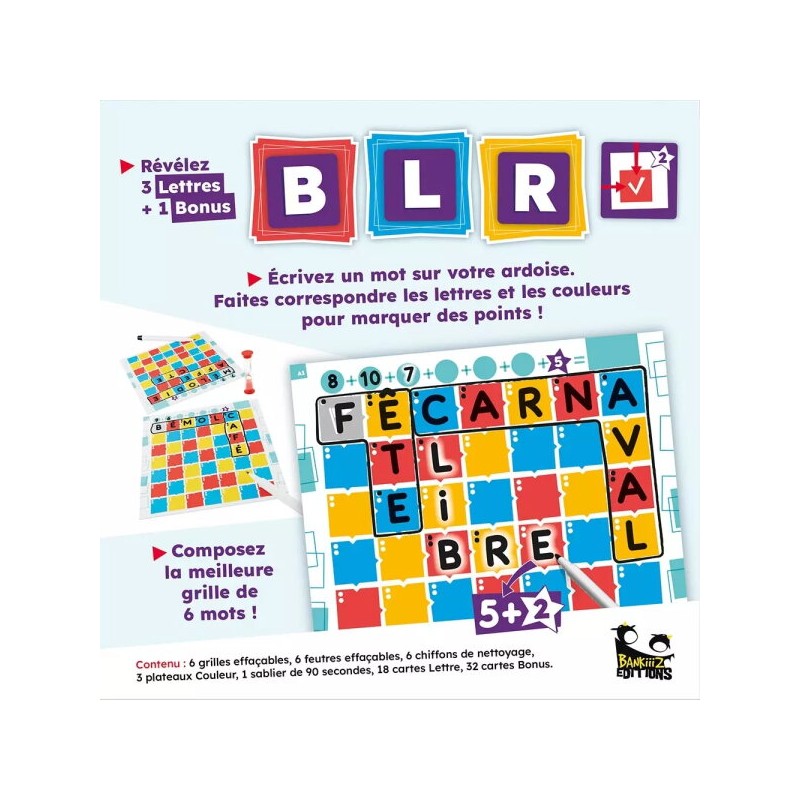 Écrire un mot à chaque tour en utilisant les lettres imposées, ça peut paraître facile… Mais saurez-vous placer ces lettres sur les cases de la bonne couleur et respecter le bonus pour composer la meilleure grille de 6 mots et l’emporter sur vos adversaires ?