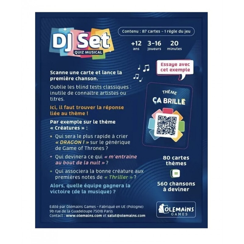 Dans DJ Set, les joueurs scannent un QR code qui renvoie vers une playlist thématique (par exemple Couleurs).